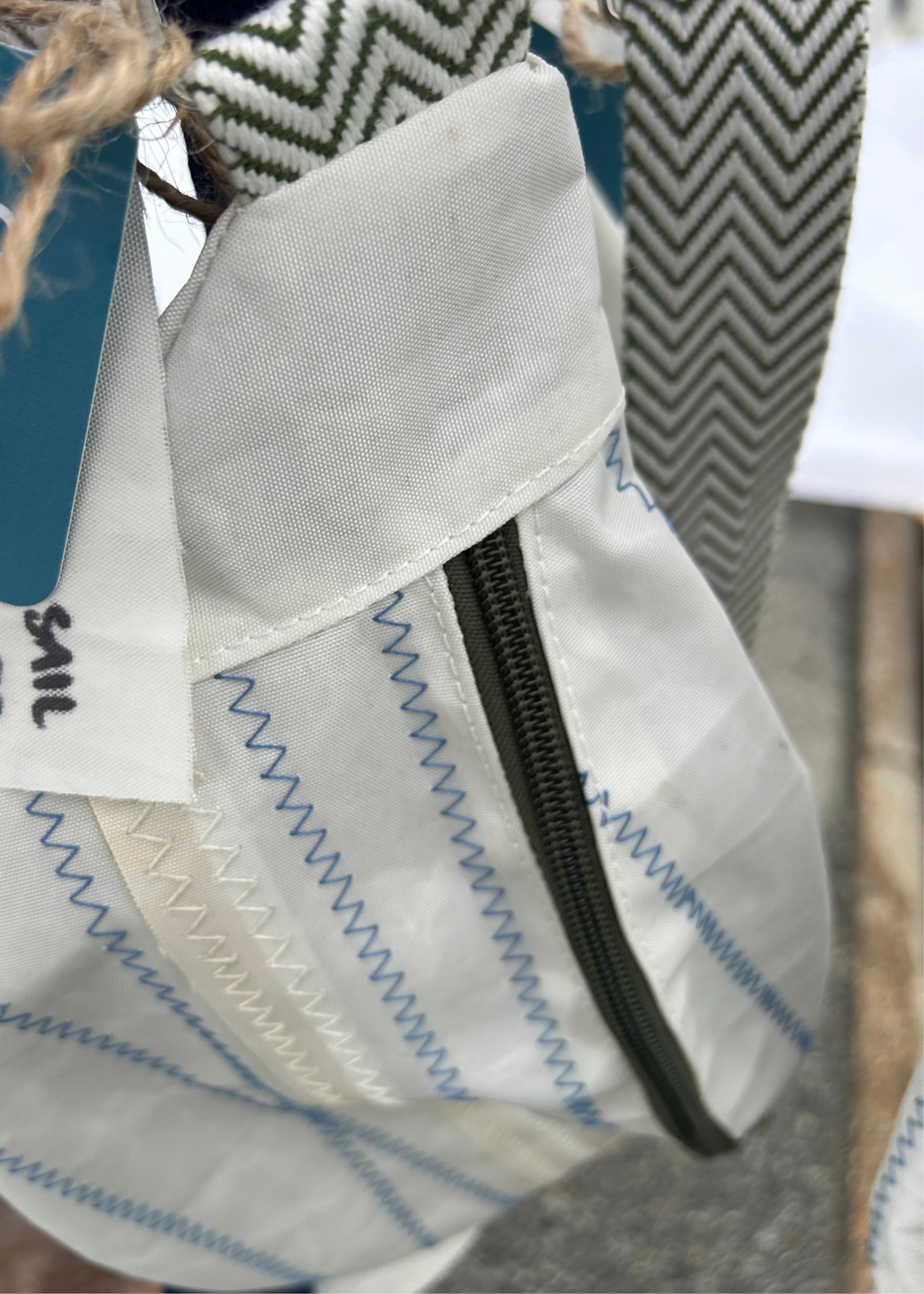 Tillsammans med väskan får du alltid en kort beskrivning av seglets historia, vilken båt det suttit på och vart det seglat! Vi använder segel från både stora och små båtar som seglat allt ifrån Skärgården till långresor över världens oceaner.